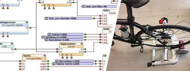 Kontakt je připojen na digitální vstup Miniserveru a vizualizace probíhá prostřednictvím Loxone App. Pro výpočet tréninkových dat byly v Loxone Configu použity vzorce a čítače (funkční blok čítač energií). K dokonalému domácímu trenérovi schází již jen logování dat a je hotovo!