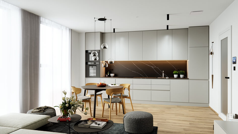 Představte si, že se vracíte domů po náročném dni. Už při vstupu vás přivítá příjemná teplota, protože Loxone přesně ví, kdy má začít vytápět. Větší byty mají navíc automaticky řízený dohřev TUV, takže vás nikdy nepřekvapí nedostatek teplé vody. Díky rekuperační jednotce se v bytě neustále udržuje čerstvý a zdravý vzduch s optimální vlhkostí.