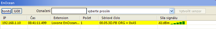 Naučení EnOcean senzoru