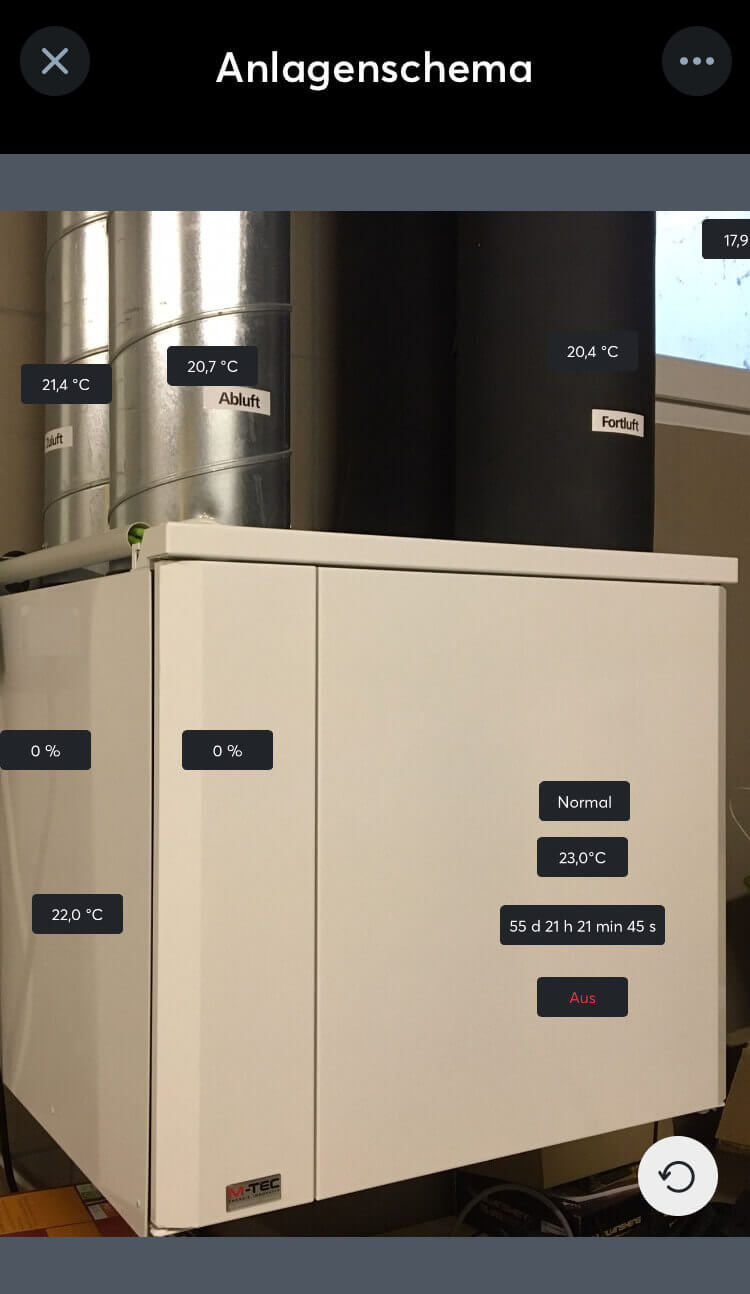 Nový funkční blok Schéma systému umožňuje aktivní vizualizaci hodnot a stavů v rámci libovolných grafických schémat a půdorysů přímo v aplikaci Loxone. K tomuto účelu lze pomocí Loxone Config ukládat libovolné obrázky a umísťovat na ně objekty a funkce z programování. Neexistují žádná omezení vaší představivosti.