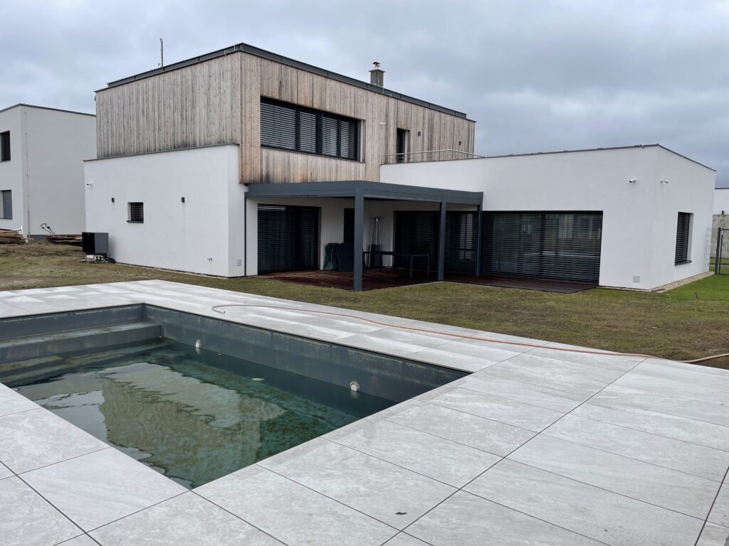 - Ovládání bazénové technologie a tepelného čerpadla pro ohřev bazénu s důrazem na minimální spotřebu el. energie.