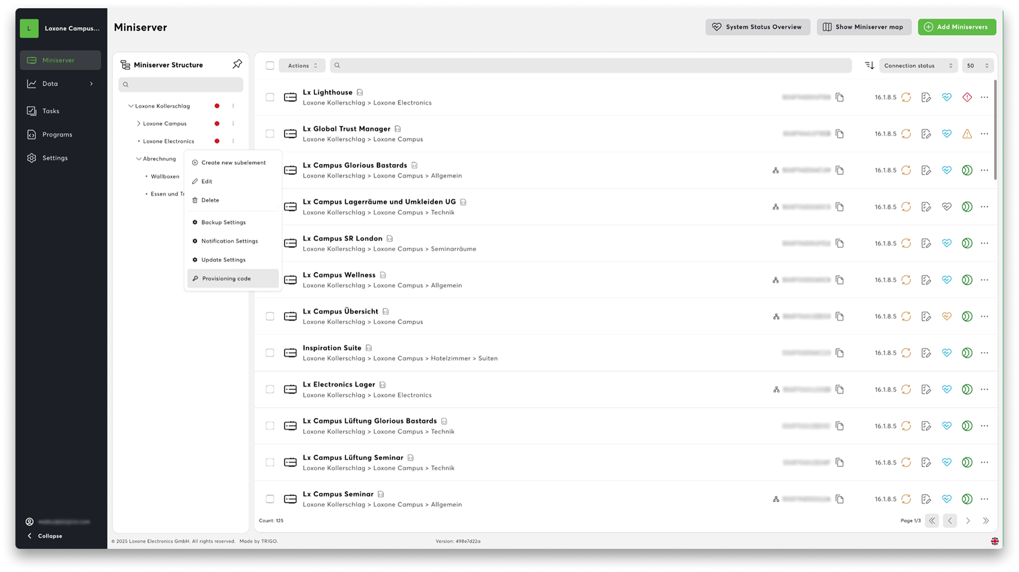 - Provisioning Codes für spezifische Elemente für schnelles, einfaches Hinzufügen neuer Miniserver