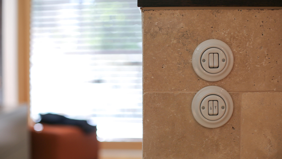 Da das Haus in den 60er Jahren gebaut wurde, war es dem Bauherrn bei der Renovierung wichtig, dass das Haus diesen Stil beibehält. Die Herausforderung war, die Licht- und Beschattungssteuerung nicht mit den üblichen Loxone Tastern umzusetzen, sondern mit Keramikschaltern. Aufgrund der Flexibilität und Offenheit des Loxone Systems, konnte diese Anforderung einfach umgesetzt werden. Neben der Beleuchtung und Beschattung wurde auch die Heizungssteuerung, die Musik, der Alarm, der Zutritt und die Poolsteuerung automatisiert.