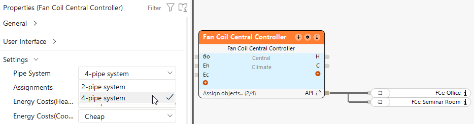Mit Doppelklick auf den Zentralbaustein können die entsprechenden Fan Coil Steuerungen hinzugefügt werden: