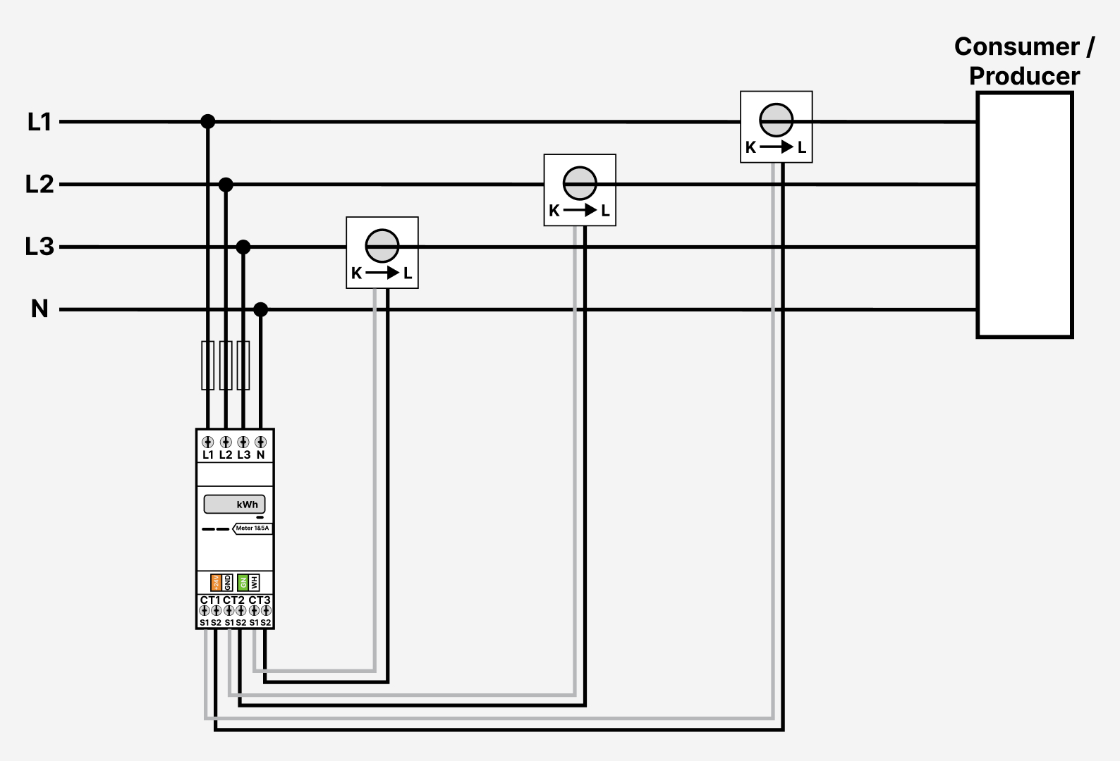 Lässt sich der bestehende Zähler nicht einbinden, kann die Messung mithilfe von Stromwandlern und passendem Zähler ohne Umbauarbeiten an der Verkabelung nachgerüstet werden.
