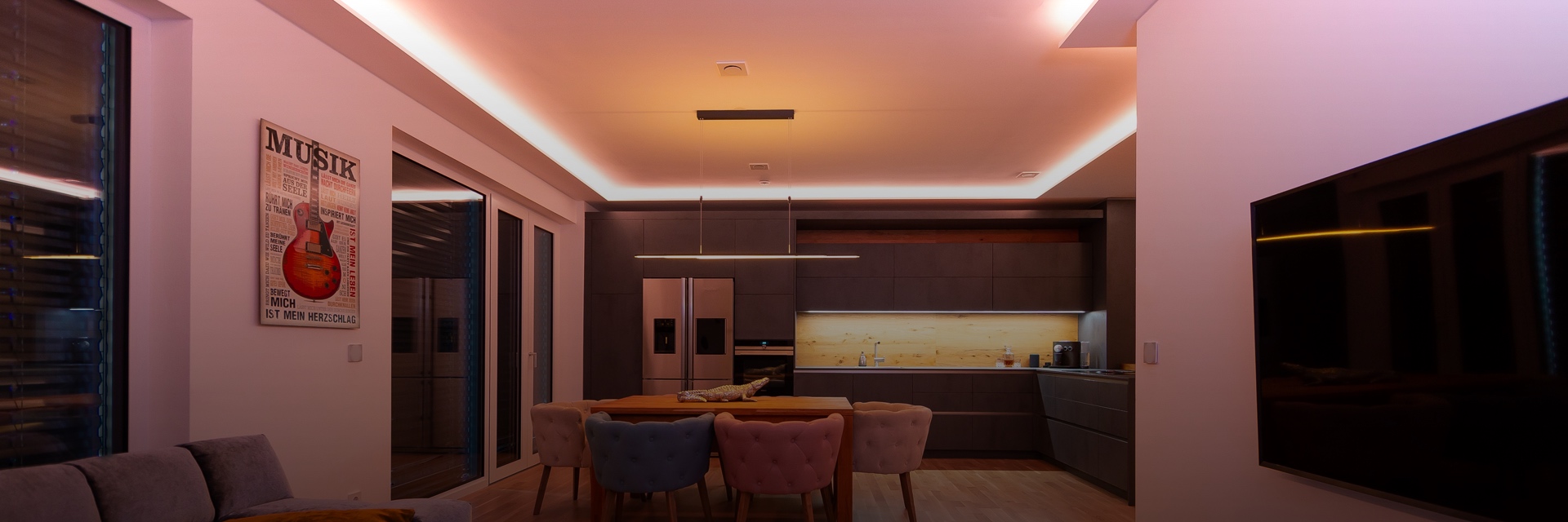 Aber auch in der Nacht kann indirekte Beleuchtung nützlich sein – stehen Sie nachts mal auf, begleitet Sie Ihre Smart Home Beleuchtung mit sanft gedimmten Licht auf Ihrem nächtlichen Weg.
