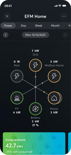 Der Baustein dient zur Optimierung des Eigenverbrauchs. Bei einem Energieüberschuss können bis zu 12 Verbraucher intelligent eingeschalten werden, statt die Energie ins Netz zu speisen.