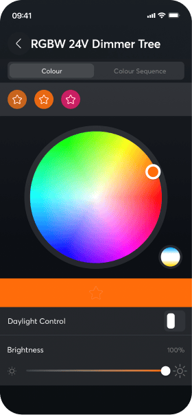Wählen Sie Ihre die Lichtstimmung, auf die Sie gerade Lust haben oder kreieren Sie neue Lichtstimmungen: Leuchten schalten, dimmen und aus hunderten von Farben wählen. Oder legen Sie Ihren eigenen Farbwechsel an.