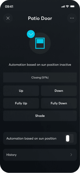 Dank Loxone fährt die Beschattung ganz automatisch. Mit der Loxone App können Sie jederzeit manuell eingreifen und Jalousien, Rollos, Markisen und mehr individuell bedienen.
