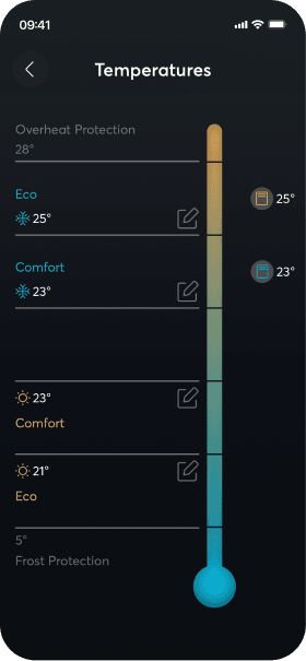 Vergessen Sie komplizierte Thermostate: In der Loxone App legen Sie Heiz- und Kühlzeiten und die Wohlfühltemperatur fest. Loxone kümmert sich um den Rest!