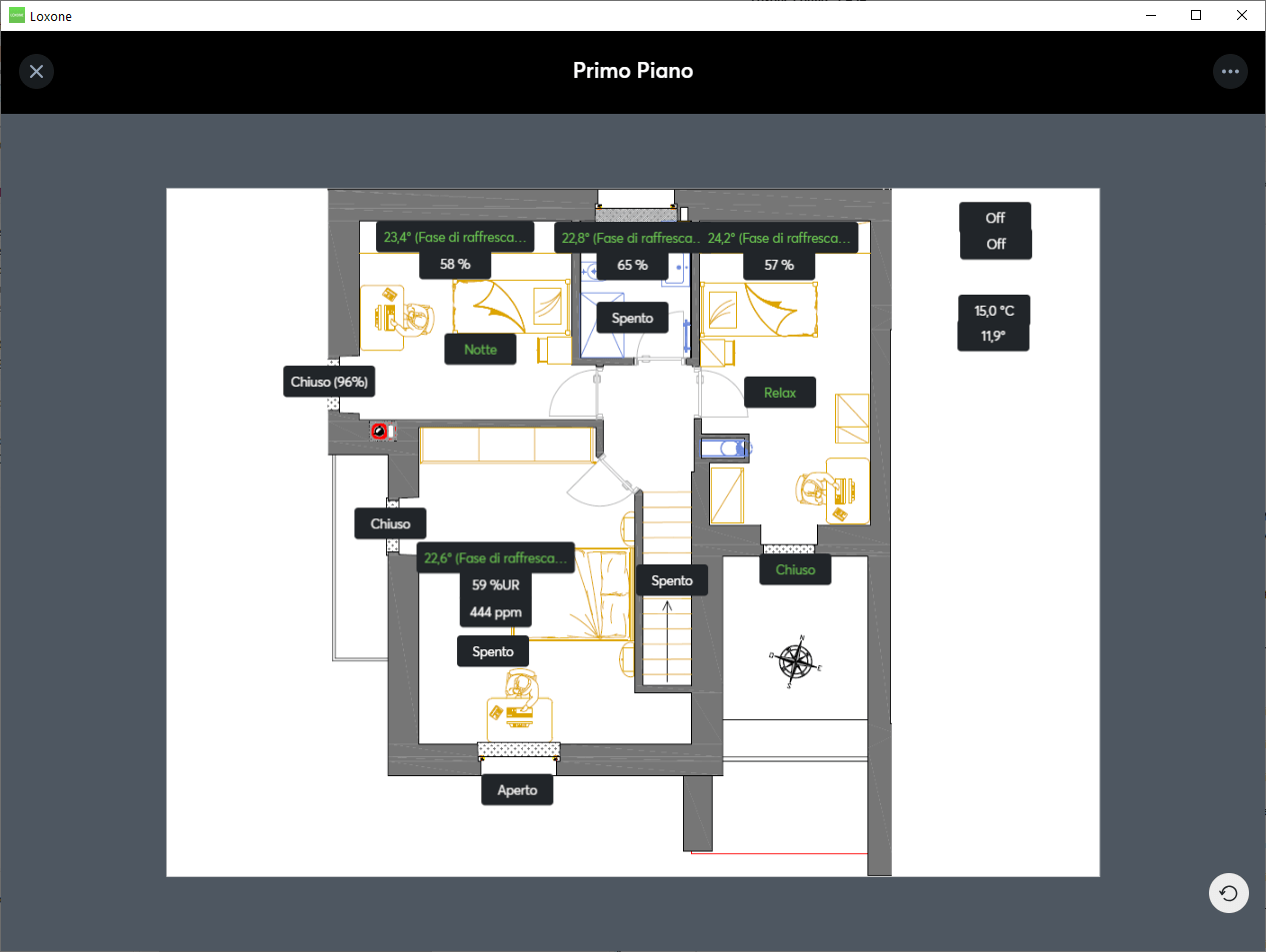 Der neue Funktionsbaustein „Anlagenschema“ ermöglicht die grafische Visualisierung von Anlagen, Grundrissen und mehr in der Loxone App. Dazu können via Loxone Config beliebige Anlagenbilder hinterlegt und Objekte und Funktionen aus der Programmierung platziert werden. Ihrer Fantasie sind dabei keine Grenzen gesetzt.