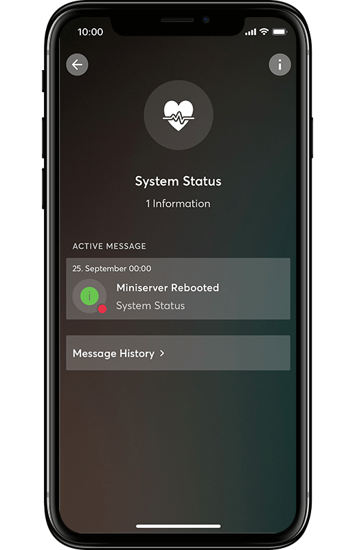 Like the dashboard in your car, System Status in the Loxone App as well as in Loxone Config will display a range of general information and crucial messages pertaining to the smooth operation of the smart home.