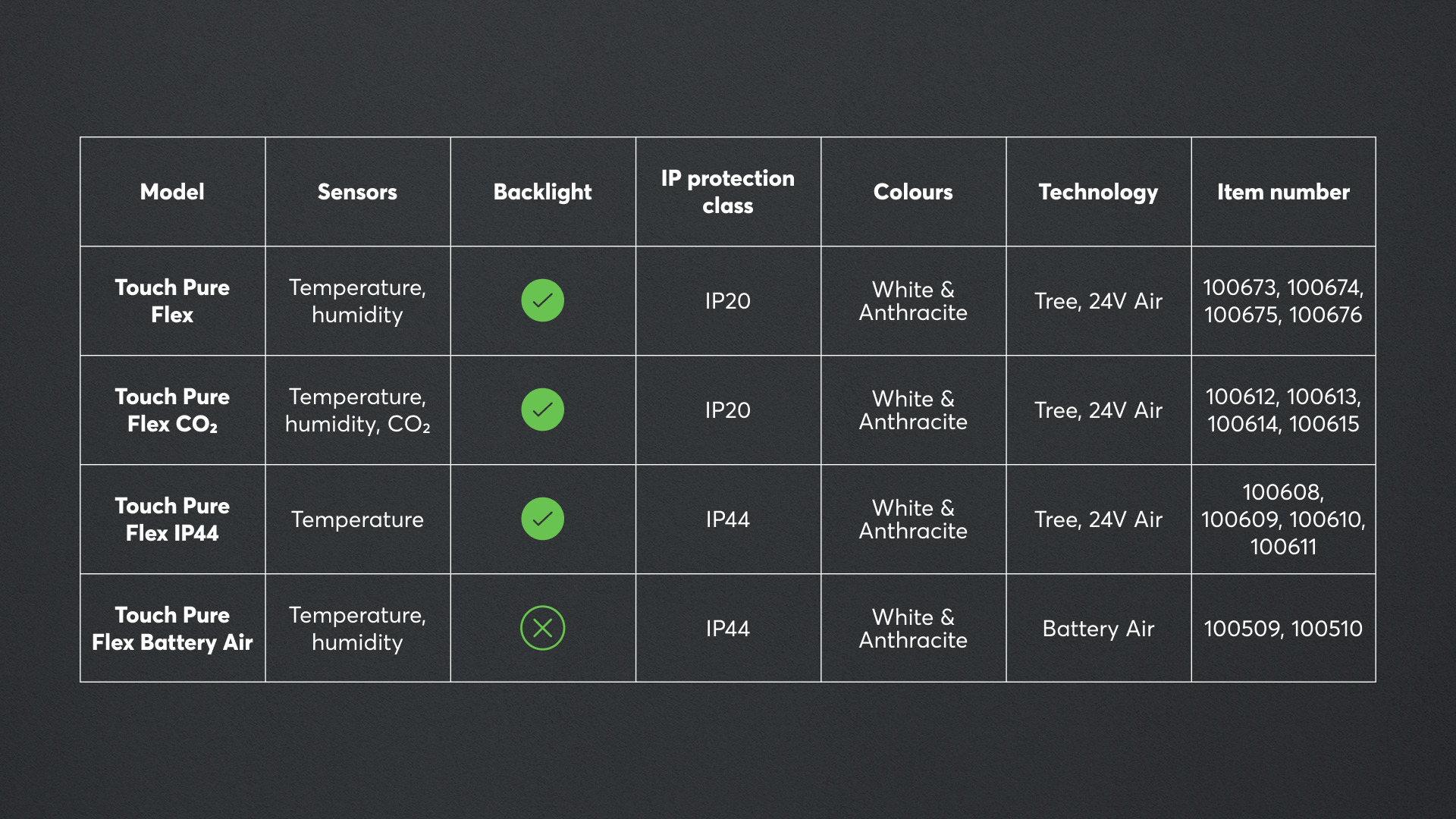 The Touch Pure Flex family is growing and growing! Our most versatile and individual control element is now also available with a CO2 sensor.