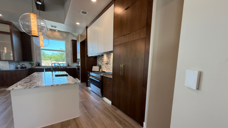 CG Smart Home delivered a fully integrated system powered by Loxone. Automated smart lighting now runs throughout the home, providing both convenience and efficiency. Multiroom audio was added to create a connected atmosphere in every space, while water leak protection ensures peace of mind. All of this is elegantly controlled through the Loxone Touch line of controls—designed to complement the home’s style while delivering powerful, intuitive functionality.