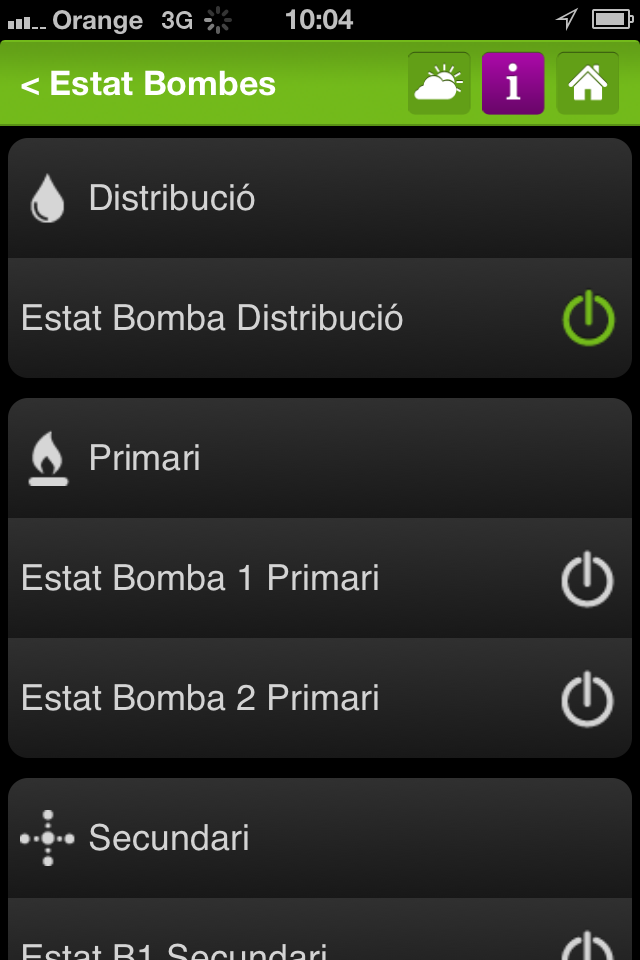 The control of the generated energy has also been carried out in a very economical way, instead of installing a conventional calorimeter with its due cost, a very simple flowmeter has been installed, thanks to the calculation power of Loxone, which gives us an output pulse connected to a Loxone digital input. Thanks to the temperature probes that we already have for carrying out temperature control and a simple algorithm implemented in the Miniserver, we can display and store the energy status of the installation.