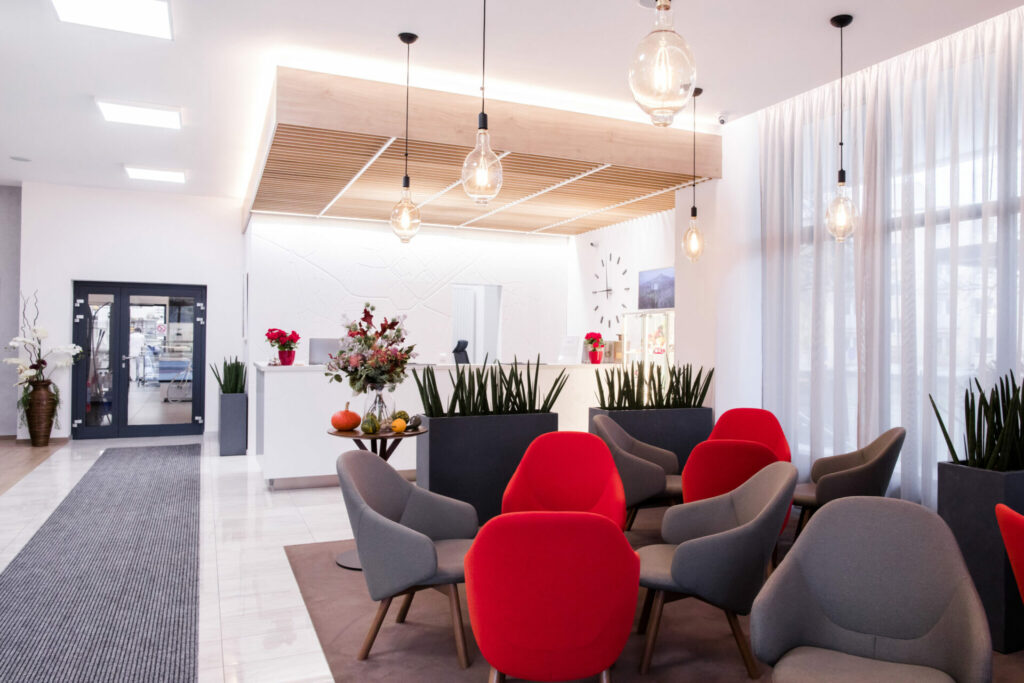 In addition to full control of the hotel, the system also takes care of the economy of the entire operation, i.e. heating, air recovery, cooling and DHW heating. It also oversees the management of systems for access to individual parts of the building and rooms, making it easier for clients and employees to navigate the entire building and, among other things, supervises its security. Loxone is also in charge of managing the hotel parking lot – the availability of parking spaces, control of the barrier, management of docking stations for electric cars and the subsequent sending of data to the hotel reception, which can charge visitors a parking fee based on them.