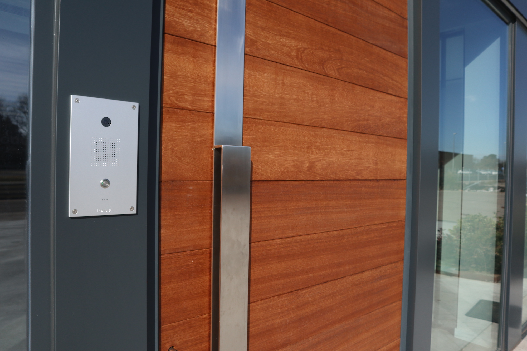 Otra de las particularidades de la nave es el control de accesos. Se han instalado dos videoporteros Intercom, uno para la entrada a oficinas y el otro para el muelle de carga del almacén. Las puertas también tienen contactos de puerta para detectar si están abiertas o cerradas.