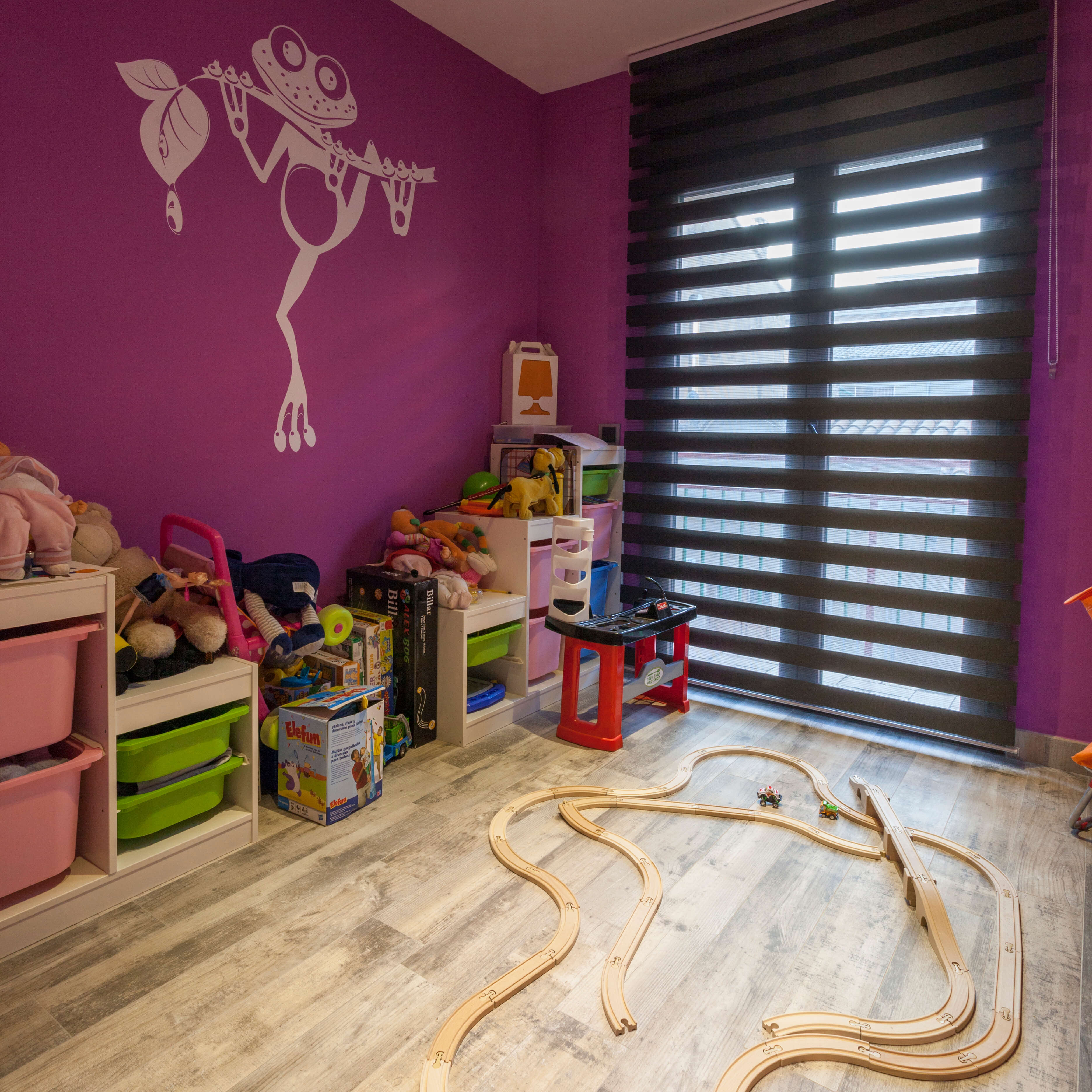 Las persianas, al estar incluidas dentro de la programación de la Smart Home, se sincronizan con las escenas. Por ejemplo la escena de ver la tele, las luces quedan tenues y las persianas quedan en sombreado, ¡y todo con un solo click!