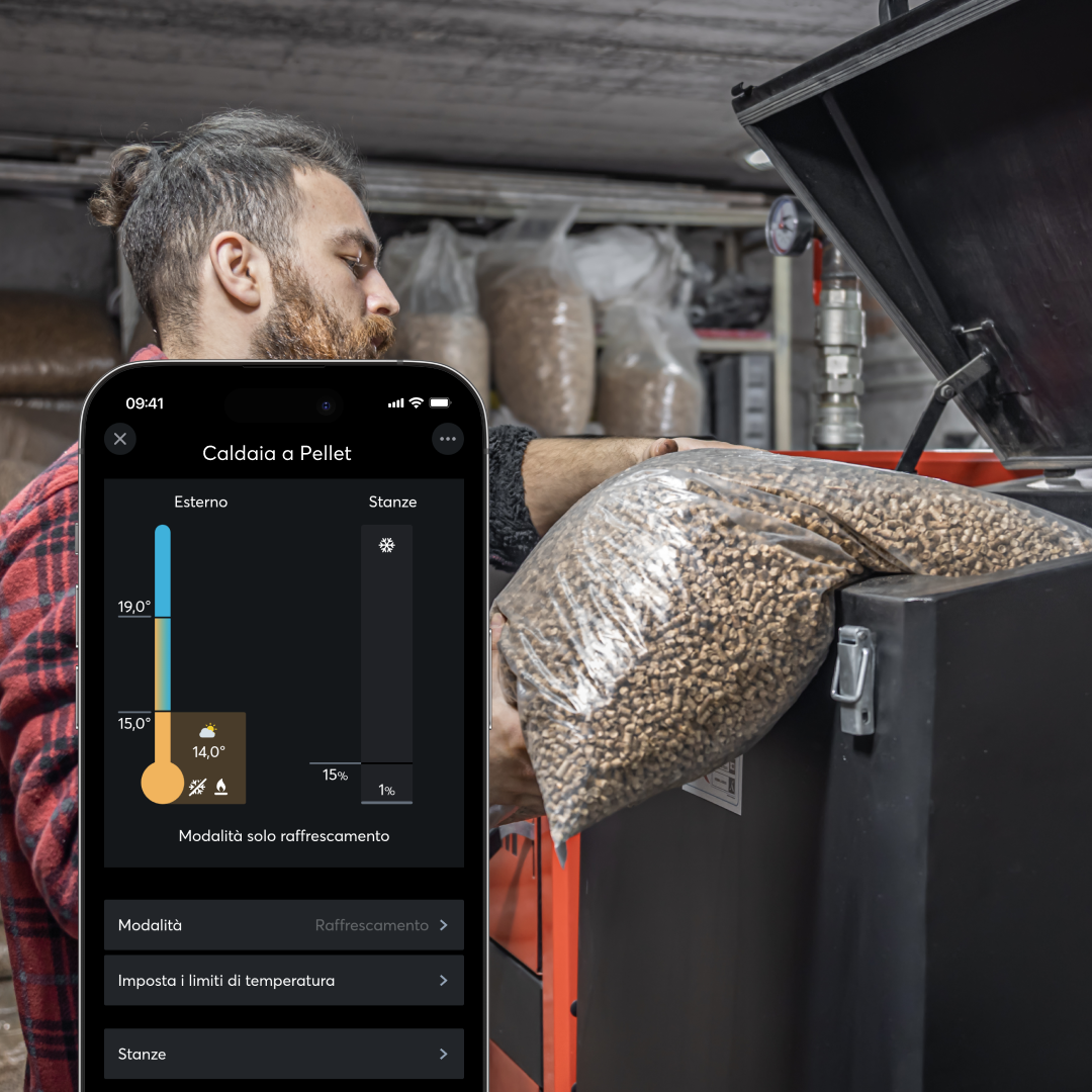 Extendido en zonas rurales y de montaña, el sistema de calefacción por biomasa es compatible con Loxone siempre que el modelo admita contacto seco o Modbus. La fuerte evolución tecnológica de los últimos años y los incentivos, están impulsando la instalación de muchos modelos nuevos, más modernos y tecnológicos, que pueden integrarse con Loxone.