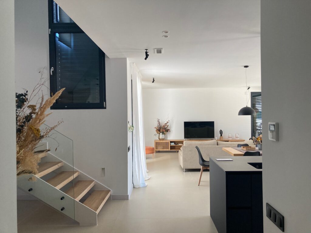 Gracias al sistema Loxone, totalmente escalable, se pudo añadir en último momento el control regulable de las luces del salón, creando una atenuación de las luces para relajarse o ver la TV.