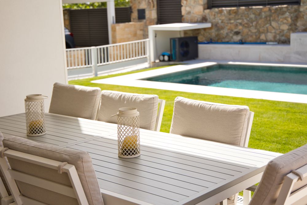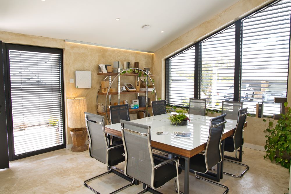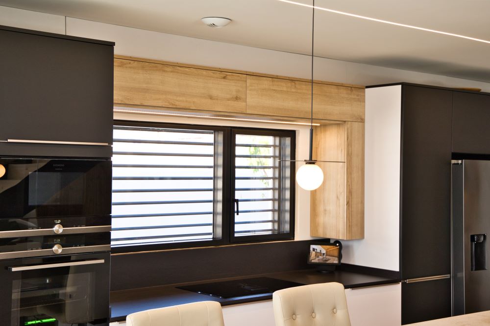 Casa Sophia ha sido diseñada siguiendo principios bioclimáticos que optimizan la ubicación de la parcela. Durante el invierno, el sol se encuentra en una posición más baja, y se ha comprobado que puede elevar la temperatura interior hasta los 28 grados. Sin embargo, gracias al sistema de sombreado automático gestionado y controlado por Loxone, se evita el sobrecalentamiento tanto en verano como en invierno. El sistema monitoriza la temperatura interior, cuando se detecta que supera en 2ºC el nivel de confort deseado, automáticamente ajusta las lamas y bloquea la entrada de luz solar. De esta manera, Casa Sophia mantiene un ambiente agradable y equilibrado durante todo el año, brindando un confort inigualable en cualquier estación.