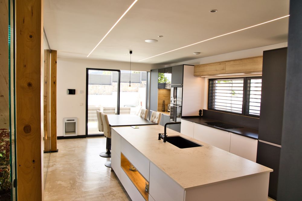 La clave en esta vivienda reside en la combinación de todas estas funciones en una sola instalación y App, como Loxone. Esto no solo hace que el control del clima sea intuitivo y práctico para los habitantes, sino que también garantiza un alto nivel de bienestar en la vida cotidiana. En Casa Sophia, la comodidad es la prioridad.