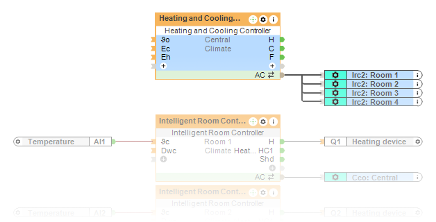 En este nivel de integración, el sistema de control de calefacción y refrigeración determina la demanda térmica global del edificio. El bloque de control evalúa si se debe priorizar la calefacción o la refrigeración. Incluso si tus clientes no disponen de un sistema activo de refrigeración, el sistema decide si la fuente de calor debe activarse o permanecer apagada.
