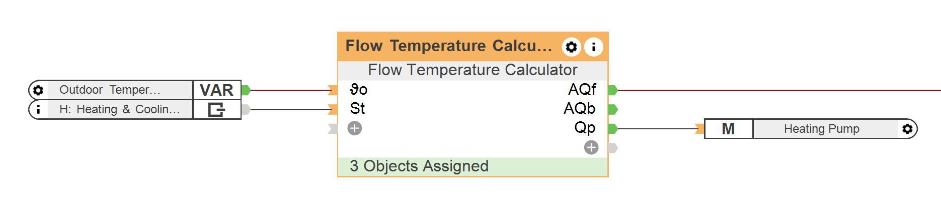 Para maximizar el potencial de ahorro energético, se recomienda calcular la temperatura de impulsión de la calefacción en función de la demanda. Esto se puede realizar mediante el bloque de software “Calculador de temperatura de impulsión”.