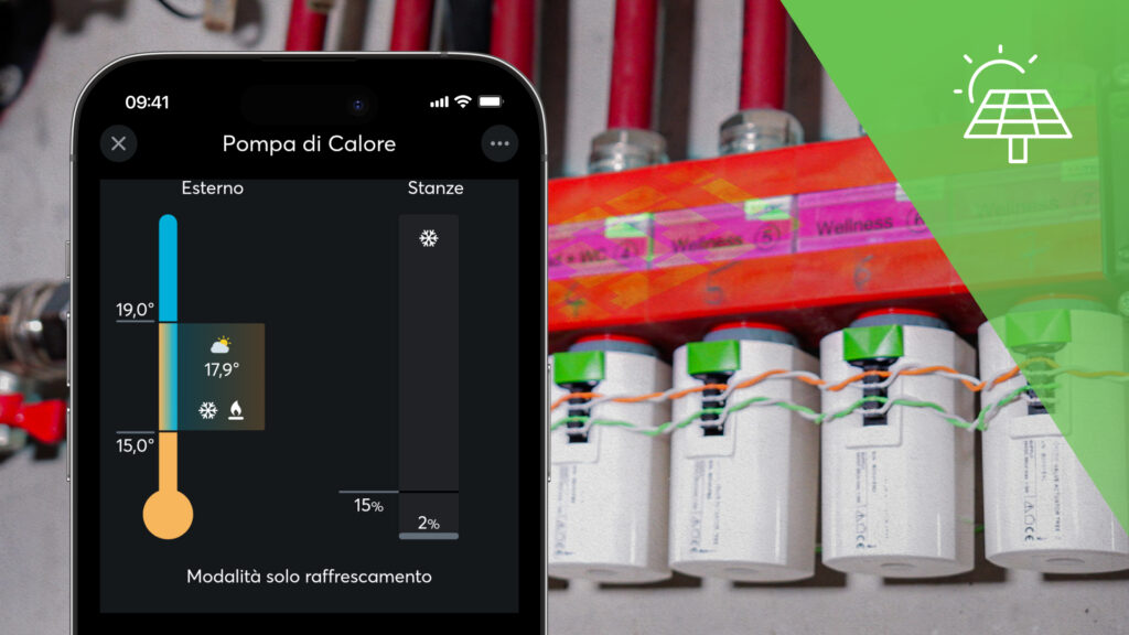 Les climatiseurs split avec fonction pompe à chaleur (air-air) peuvent être contrôlés via AC Control de Loxone. Cela permet d’inclure également ces appareils dans le système de gestion énergétique, avec activation automatique en fonction de la présence, de la température et de la disponibilité de l’énergie solaire.