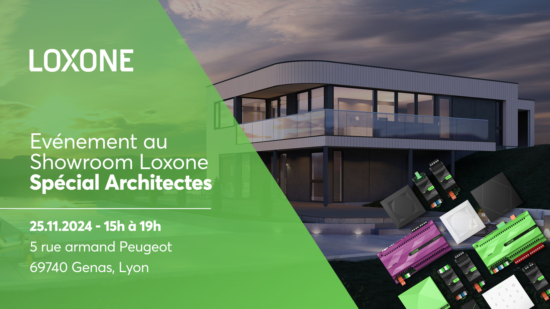 Evénement au Showroom Loxone Spécial Architectes 25.11.2024 - 15h à 19h - 5 rue Armand Peugeot 69740 Genas, Lyon