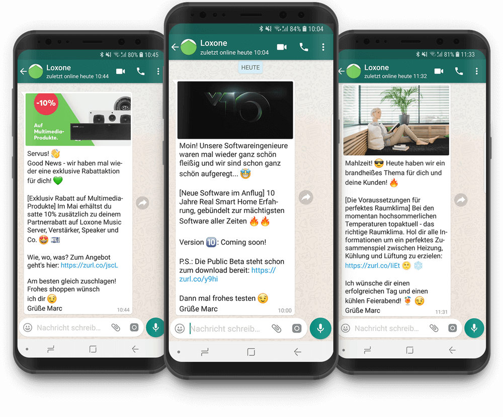 Le numéro de téléphone que vous fournissez sera ajouté à une liste de diffusion de l’application Whatsapp Business installée sur le dispositif mobile appartenant à Loxone, SAS avec le numéro +337 70 00 79 13. Si vous souhaitez vous désinscrire, lorsque vous recevrez le message correspondant, votre contact sera supprimé de la liste de diffusion et aucun autre message Whatsapp ne vous sera envoyé par Loxone.