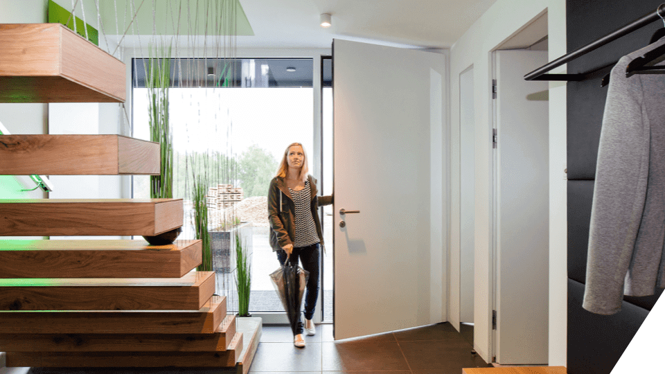Plutôt que d’essayer de contrôler les serrures électriques intelligentes, nous recommandons d’installer une porte avec une serrure motorisée intégrée. De cette façon, vous évitez les tracas de l’installation de la serrure après coup – et vous pouvez également l’intégrer intelligemment directement avec votre système Loxone.