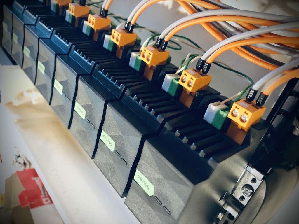 - Ainsi c'est la mise en place de plannings pour gérer les éclairages (enseingnes, surface commerciale, bureaux) ou le climat (19 cassettes sur VRF Atlantic) qui va simplifier et automatiser le confort.- 20 Enceintes diffusent l'ambiance musicale et celles du Back-Office remontent les notifications de synthèse vocale pour les livraisons (Portiers PMR DoorBird), entre-autre.