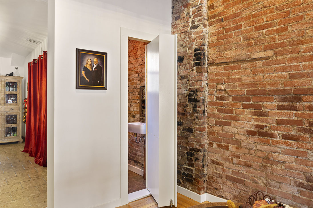 This library of books isn’t exactly what meets they eye on the outside. Simply pull forward and a secret powder room appears with automated lighting and ventilation.