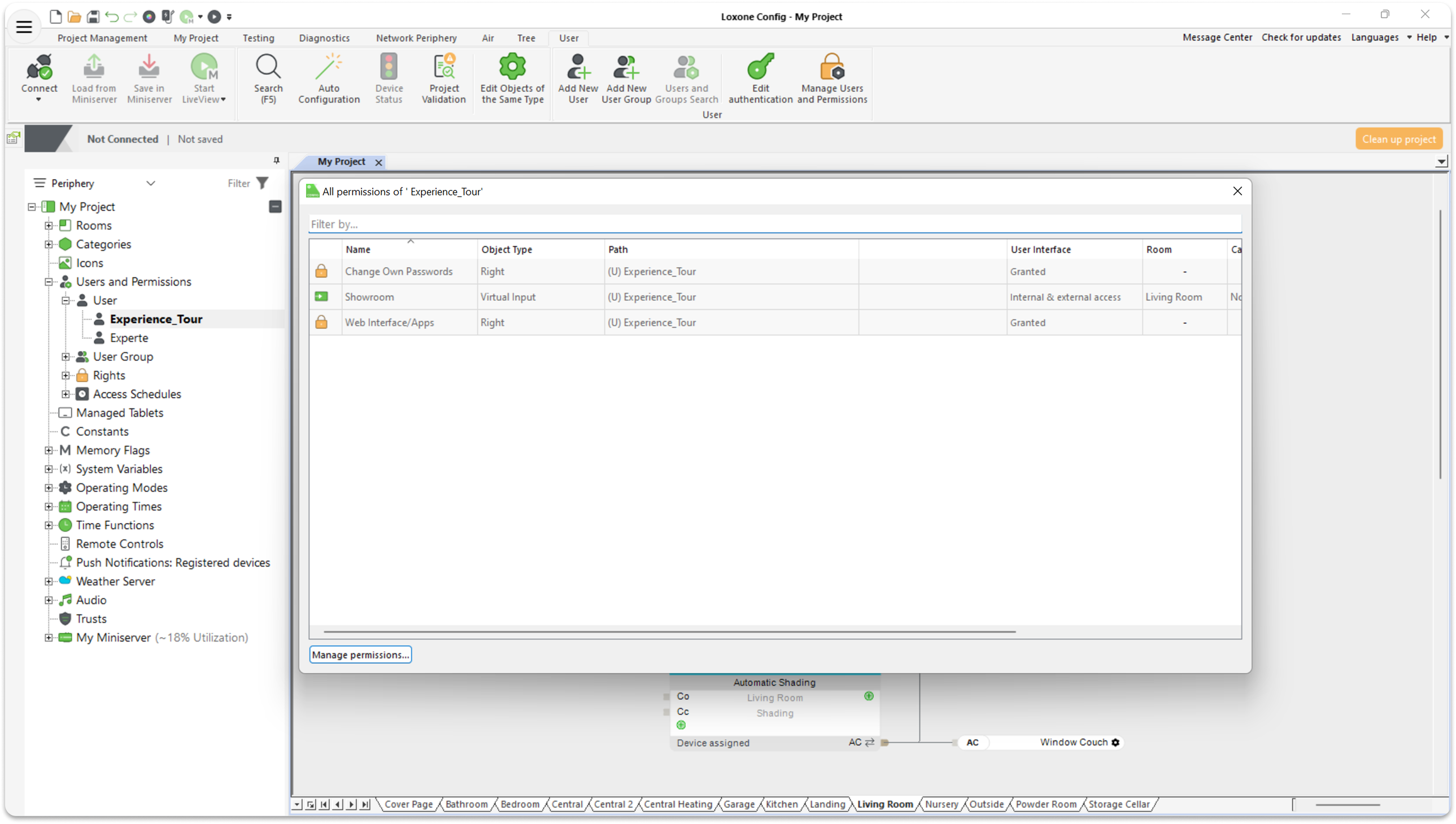Start the tour, check the processes and adjust lighting scenes, shading, or audio as needed – for a perfect customer experience.