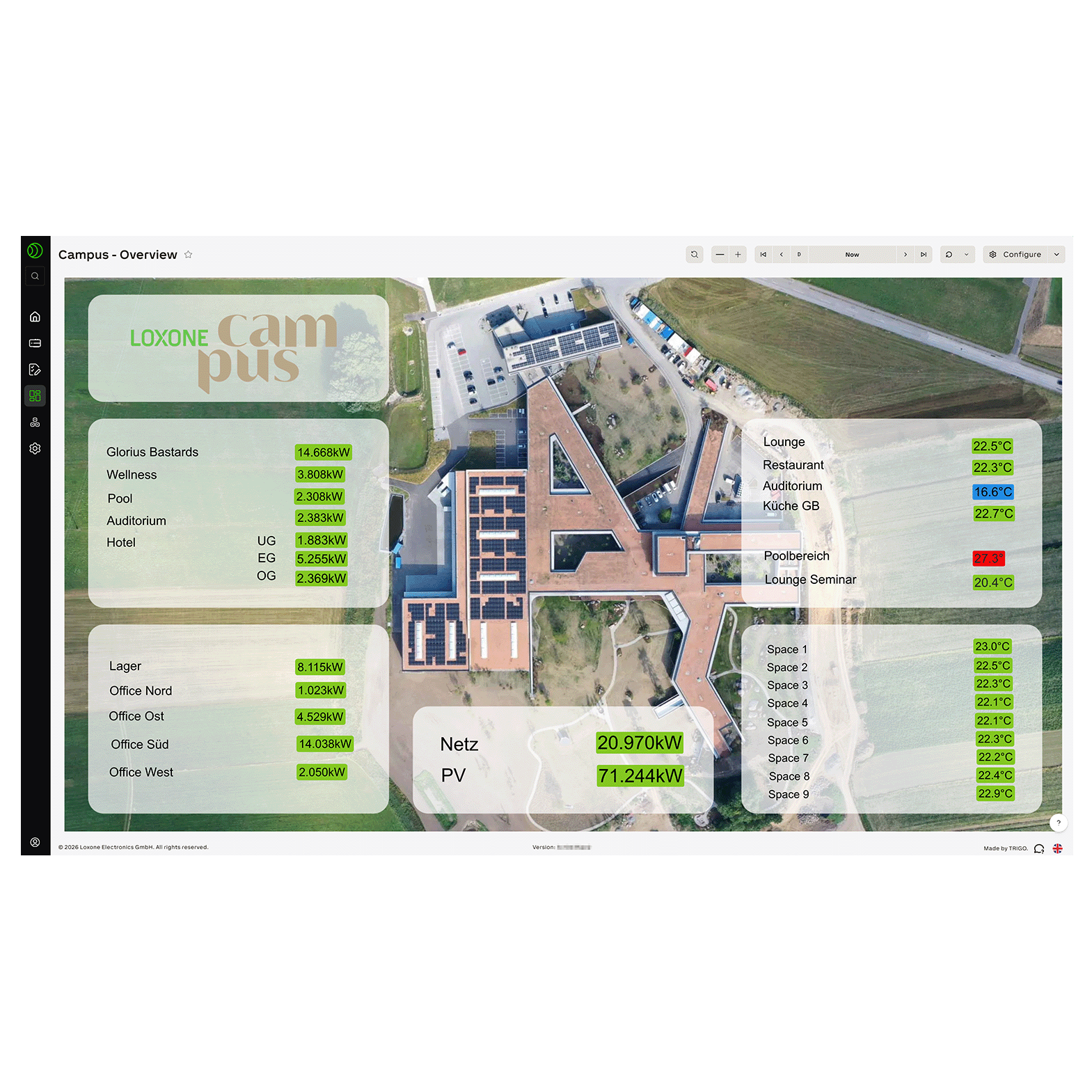 LOXONE Exosphere makes building infrastructure visible, highlights savings, and identifies deviations. With its clear visual representation, you stay in control.