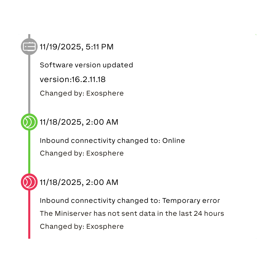 Seamless real-time monitoring of the entire Miniserver fleet with automated cloud backups of all project statuses.