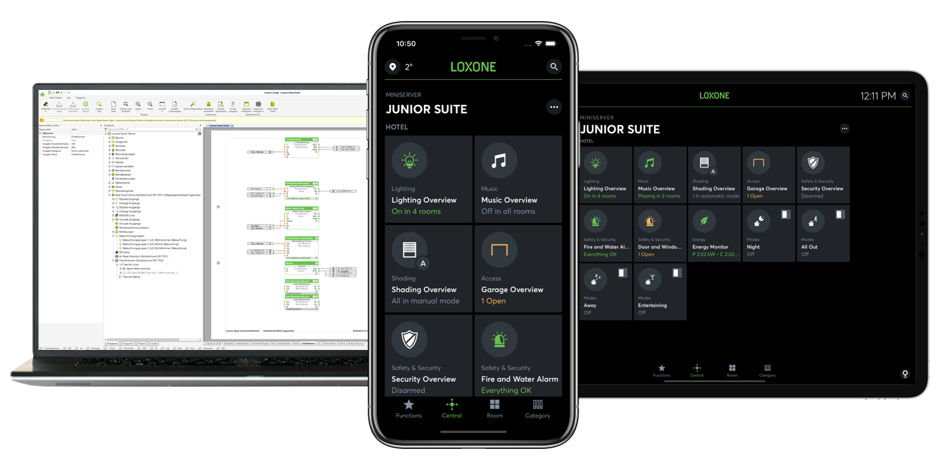 As a Loxone Partner you get a solution for all kinds of projects. With more than 500 products you’re able to fulfil all of your customers’ wishes, in addition to using our free app and software to configure your projects. Loxone Config offers more than 250 function blocks that are ready to use and it also allows individual programming. You offer your customers a 360° solution – from lighting or climate control to security features.