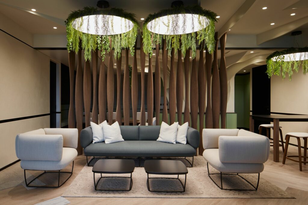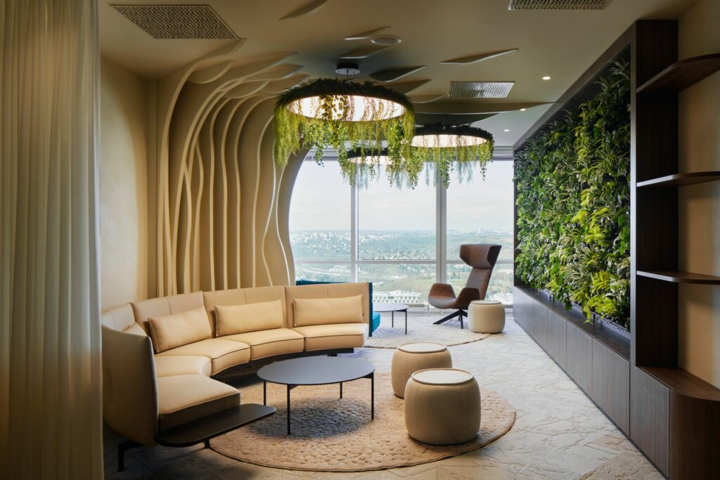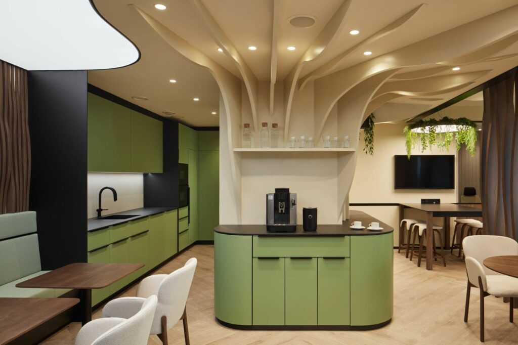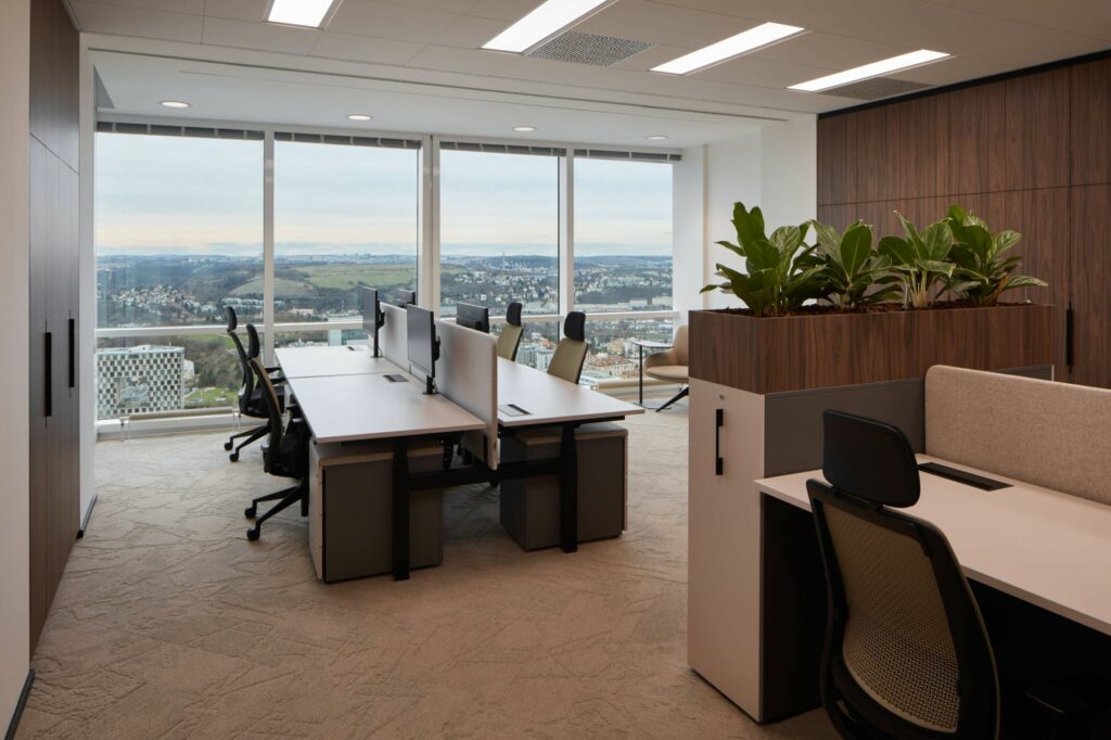 Loxone, DALI lights and Touch Pure Flexes played key role in achieving the right solution for light and HVAC control. The spot lights are controlled by Presence sensors for maximum comfort walking through the corridor. In contrast, the lights in offices, open spaces and meeting rooms are controlled using scenes.