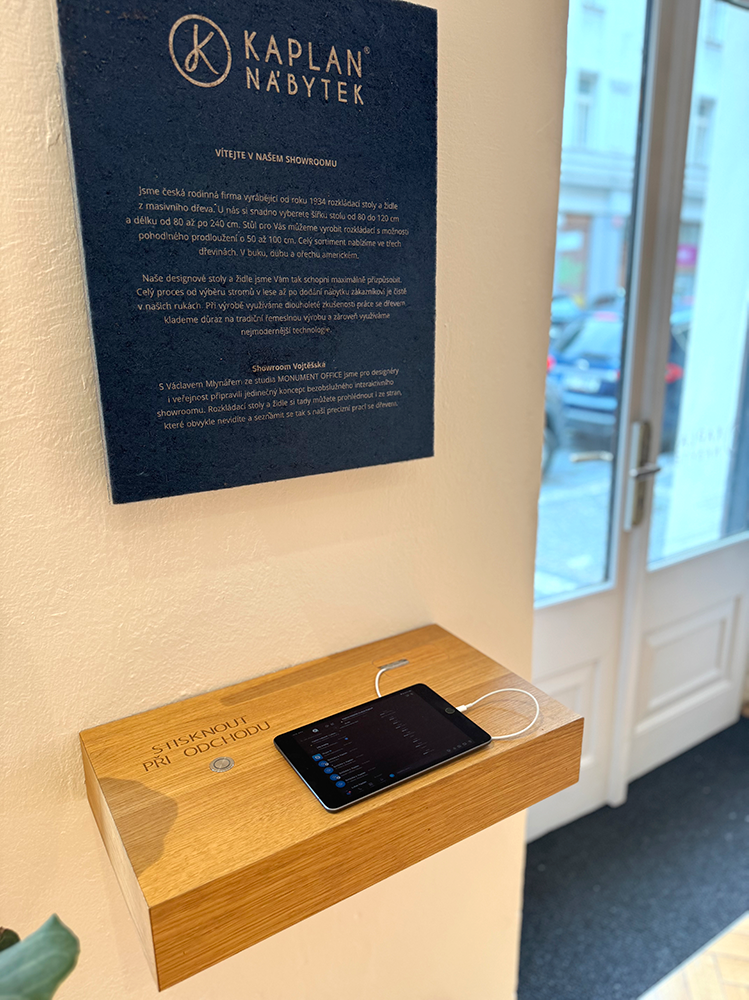 THIS CONTENT IS AUTOMATICALLY TRANSLATED BY GOOGLE TRANSLATE. The company Kaplan, a furniture manufacturer from the Eagle Mountains, needed to create an autonomous Showroom with furniture in Prague, so that the client could visit it literally 24 hours a day.