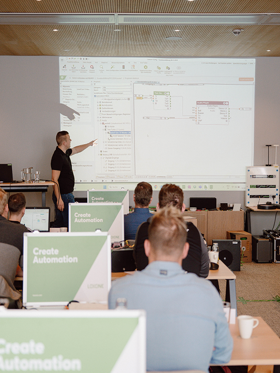 In the Loxone Bootcamp, you take your skills to the next level through intensive, hands-on training. Working on real use cases, you plan, configure and implement complete solutions in a short time. You sharpen your expertise, improve your speed and gain the confidence to handle larger and more demanding projects — from concept to commissioning.