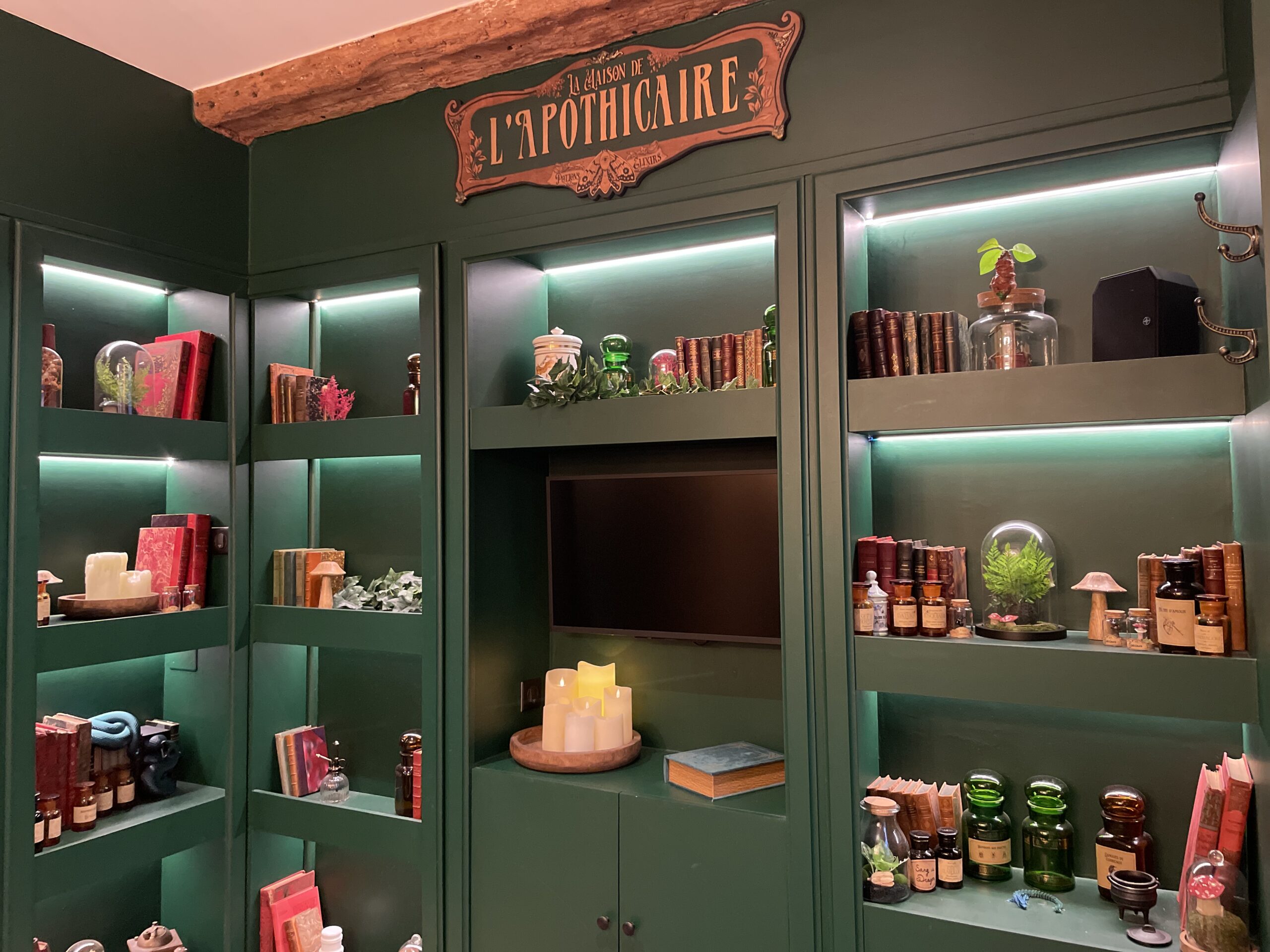 Ciò che colpisce alla Maison de l’Apothicaire è che l’esperienza comincia prima ancora che gli ospiti posino le valigie. Appena la porta si apre, uno scenario di benvenuto orchestrato scatta automaticamente: le luci si adattano, la musica si accende, e l’atmosfera trasporta immediatamente in un altro mondo. Questo primo momento è fondamentale: crea l’effetto “wow” che segna l’esperienza e anticipa il tono del soggiorno.
