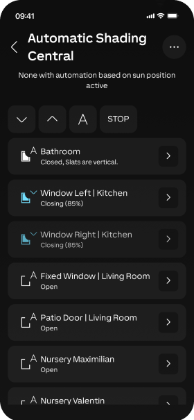 Con LOXONE la gestione è automatica, ma puoi sempre controllare tende, veneziane e tapparelle direttamente dall’app.