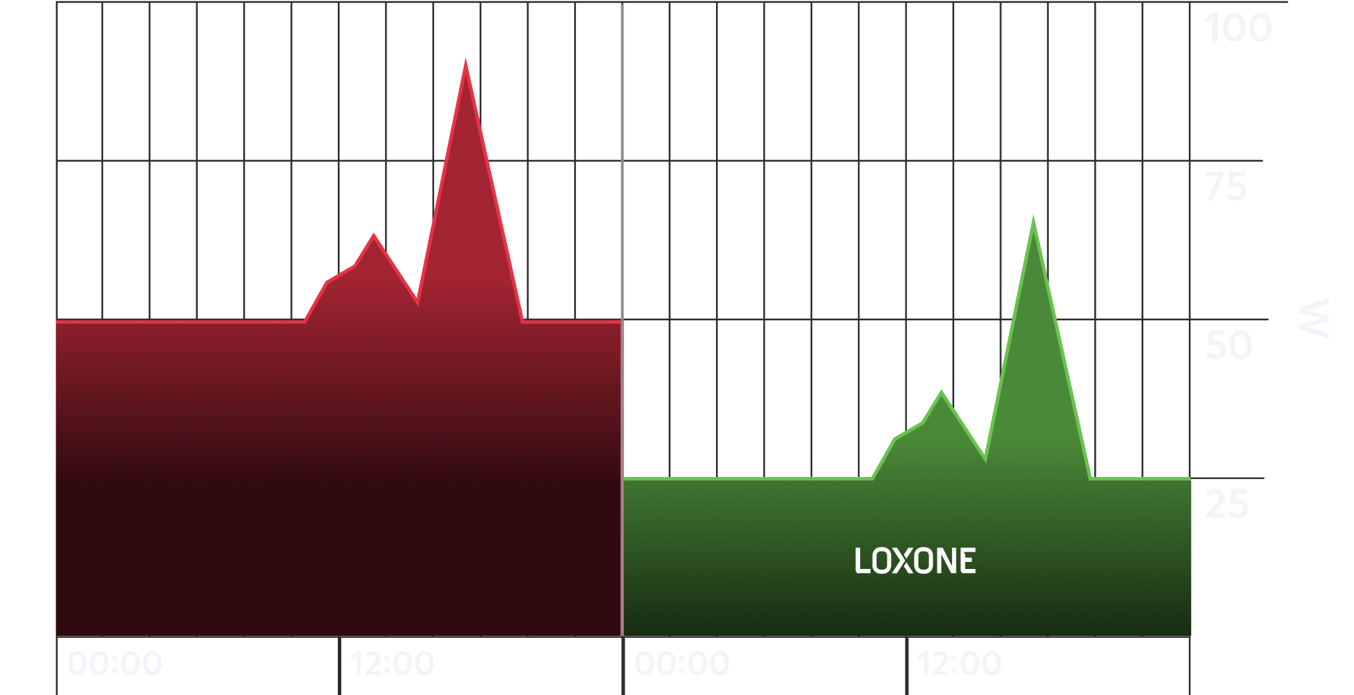 Tot slot gaan we strategisch te werk. Loxone helpt om energieverbruik te verschuiven naar tijden dat energie goedkoper (of zelfs gratis) is.