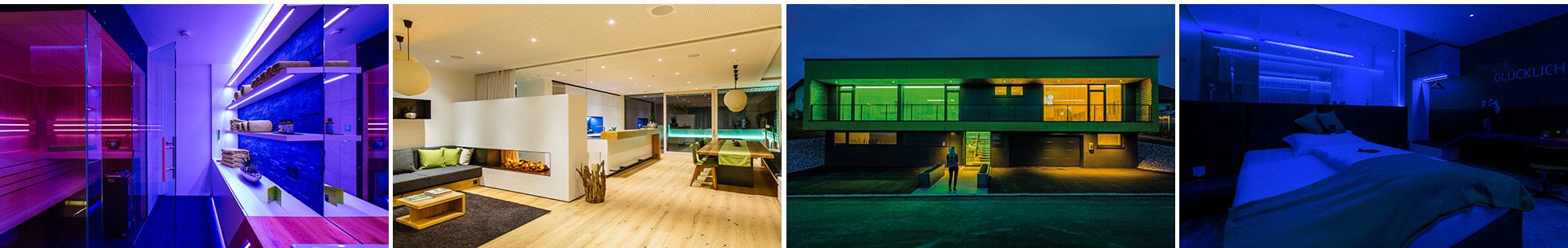 Verlichting is enorm belangrijk. Omdat we steeds streven naar een optimale lichtervaring, hebben we onze eigen LED-spots ontwikkeld. Die zijn energiezuinig, flexibel, makkelijk te installeren en traploos dimbaar. Bovendien is elk model verkrijgbaar in een WW (warm wit) en RGBW (gekleurd of wit licht) variant verkrijgbaar.