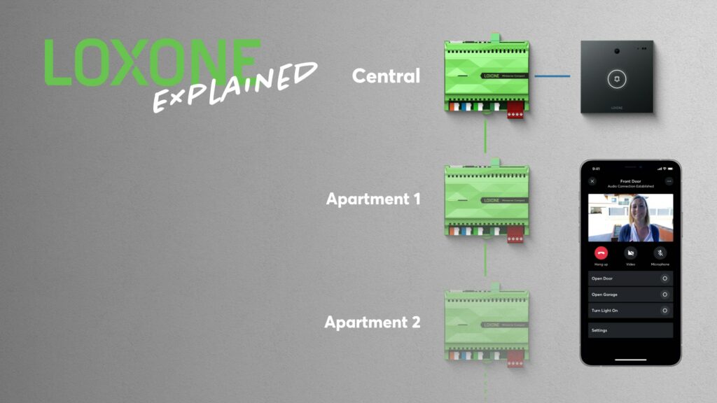 Dzięki nowemu Loxone Config 13, kilka Miniserverów może korzystać z jednego Intercomu. Jest to przydatna funkcja np. w apartamentowcach czy biurowcach.