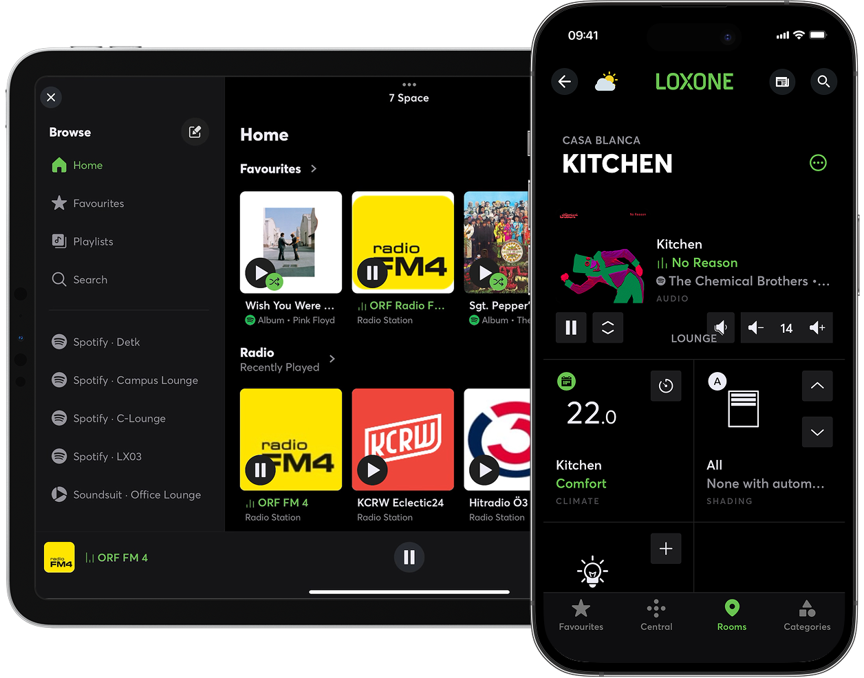 Zmiany nie dotyczą wyłącznie odtwarzacza audio – nawigacja w aplikacji Loxone jest teraz nawet o 30% szybsza! Różnicę szczególnie zauważysz na stronach z dużą ilością treści, takich jak przegląd kategorii, sterowanie centralne czy monitor przepływu energii.