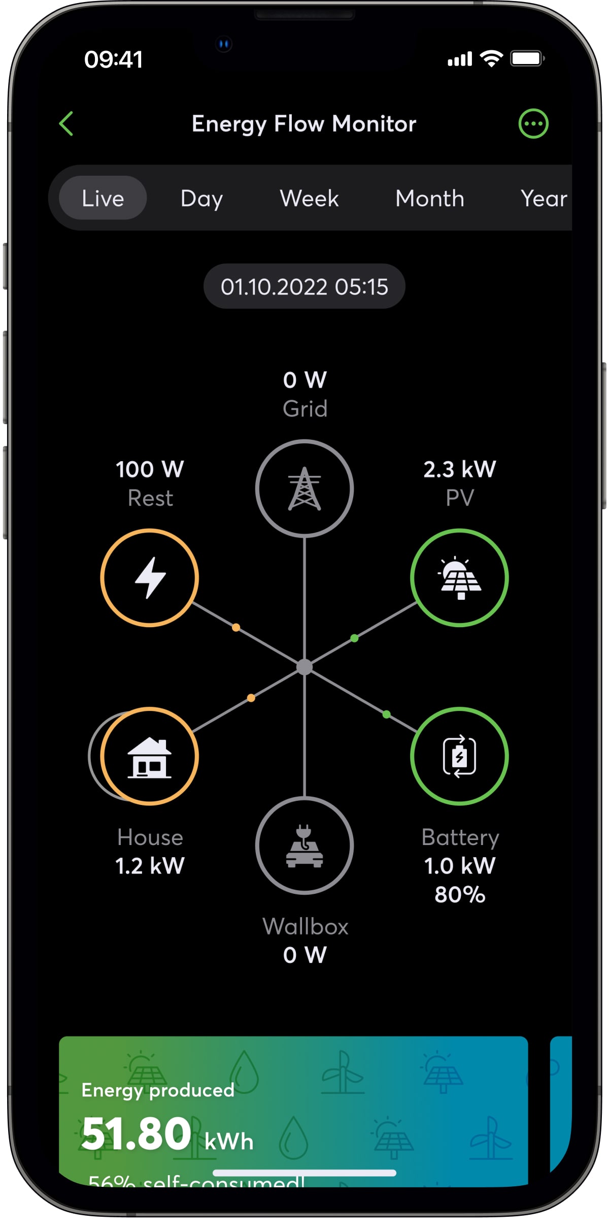 Faktyczne wartości zużycia i przepływ energii są dostępne w każdej chwili.