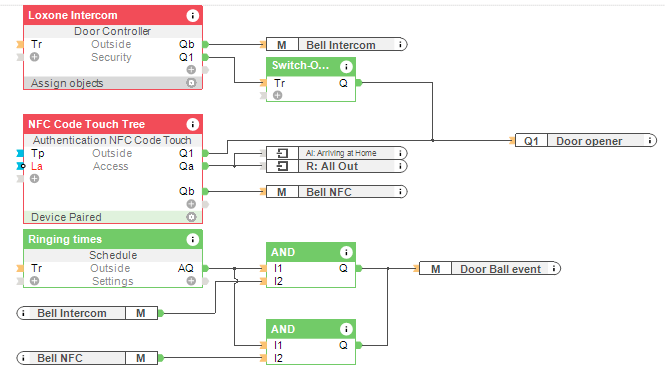 Przycisk dzwonka do drzwi (np. na klawiaturze NFC Code Touch lub wyjścia dzwonka na Interkomie) odtwarza dźwięk dzwonka we wszystkich wybranych strefach muzycznych (lub na standardowym dzwonku do drzwi). Harmonogram służy do określania godzin, w których dzieci będą spać. Naciśnięcie dzwonka do drzwi w tym czasie nie uruchomi dzwonka, ale aktywuje tylko wejście alarmowe na podłączonych sterownikach oświetlenia.