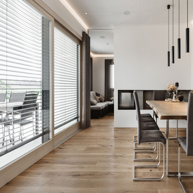 Zacienianie dopasowuje się do codziennego rytmu życia, zapewniając komfortowe światło, przyjemny klimat we wnętrzu i większą prywatność.
